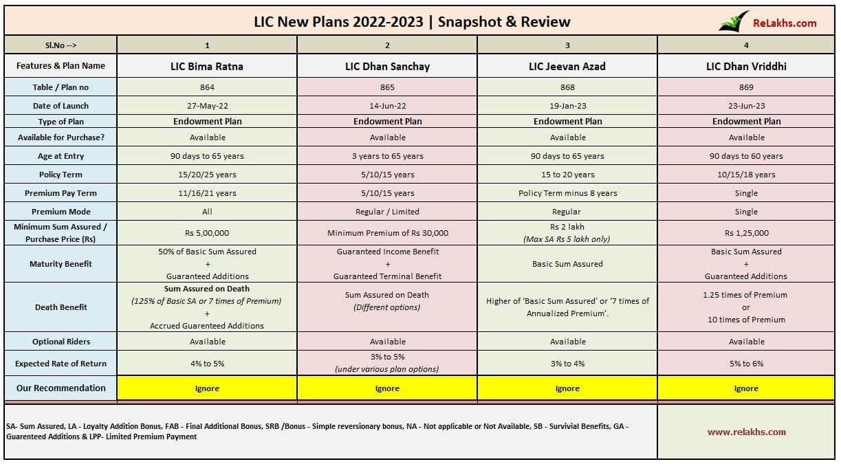 LIC has launched 7 new plans in the last one year or so. In this post I have tried to list down the important features, details and my recommendations on all the latest LIC Plans that have been launched during 2022-23. From January 2022 to till-date (22nd Aug, 2023), LIC has launched four Endowment Life Insurance plans, one ULIP Insurance plan, one Pension …